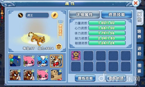 这是进阶之后的图,可以看到各资质都有了不同程度的提升,小老虎成功进阶成虎王了,外观也有变化看到没有,变得凶猛成熟了,小编想说:还我那个萌萌的小老虎。。。