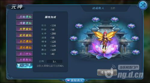 元神系统可以永久增加玩家角色的各项属性,注意这里的角色不仅仅指主角角色,连神将的属性也可以提升。