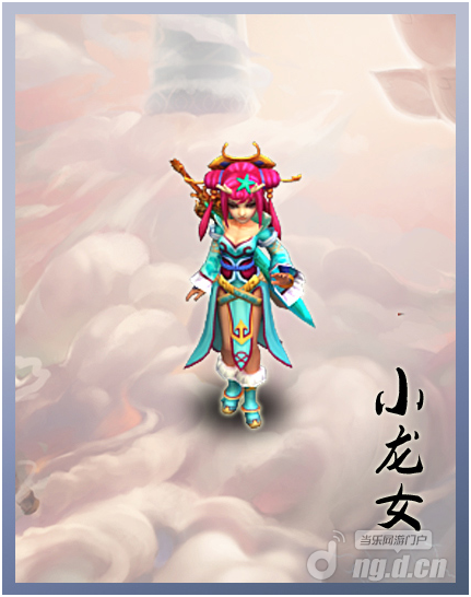 【小龙女】身为老龙王的掌上明珠,在水族中可谓是万千宠爱于一身,想学什么便自然有老师站出来教授,所以通晓各种法术,但最擅长的还是用一柄宝剑,攻击敌方纵排。小龙女虽年少力微,但天生聪颖,所学的招式法术威力都能青出于蓝。