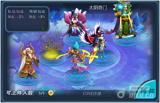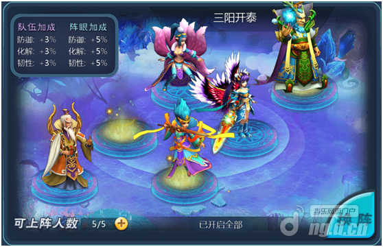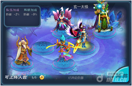 玄一太极阵:队伍防御加成2%,阵眼1个,防御加成3%