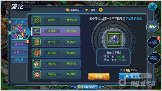 装备强化需要消耗铜钱,同时强化等级无法超过主角自身等级。例如主角30级的话最高只能将装备强化至30级,毕竟极品装备也是需要自身实力足够才可以驾驭的嘛。