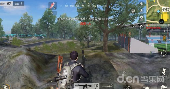 足球场自飓风半岛开岛以来就备受追捧,但也因为其观众席太过敞亮,淘汰率一直居高不下。在这样的一处建筑里,留下来的队伍只能有一支。补漏君就建议荒友在足球场北偏西方向的建筑群简单搜索,然后在足球场北边的石堆后等“大鱼”上钩。在石堆后荒友可以看到足球场东边的观众席和足球场两侧的公路。(注意观察载具!)
