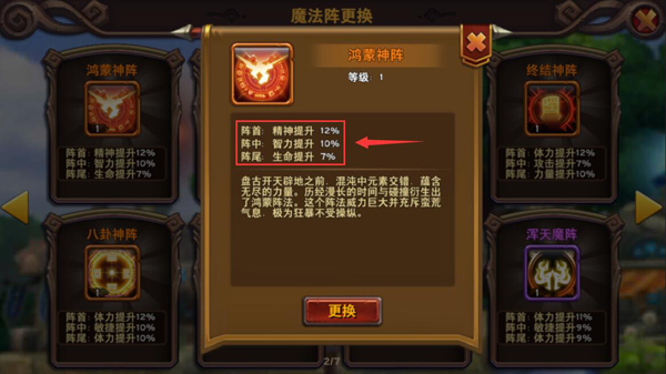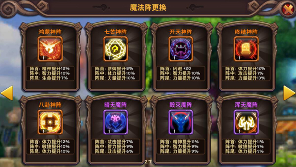 《魔神世界》中的阵法有很多种,每一种都有各自的特色,等阶高的阵法固然带来的加成比较高,但是要符合你所配备的阵容才能发挥作用,或者说根据好的阵法回来更换阵容。