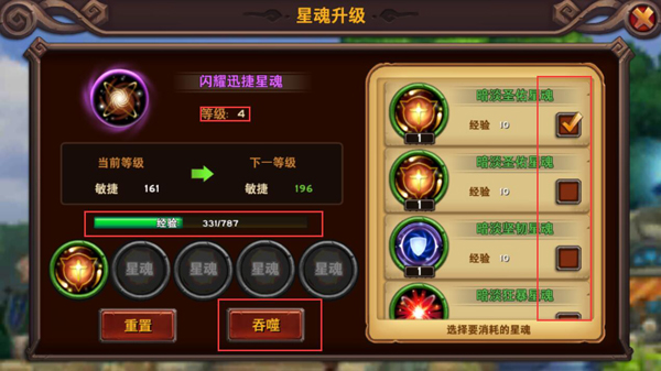 玩家抽取星魂后也能对星魂经行升级,提升该星魂的加成,秩序在星魂界面中点中星魂,点击升级即可。