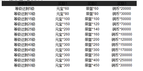 【活动内容】升级即送海量元宝、铜币,更有大量荣誉等你来拿!