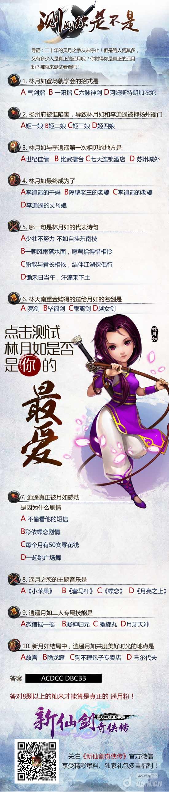 测试你的死忠程度 《新仙剑奇侠传》灵月粉终极测试