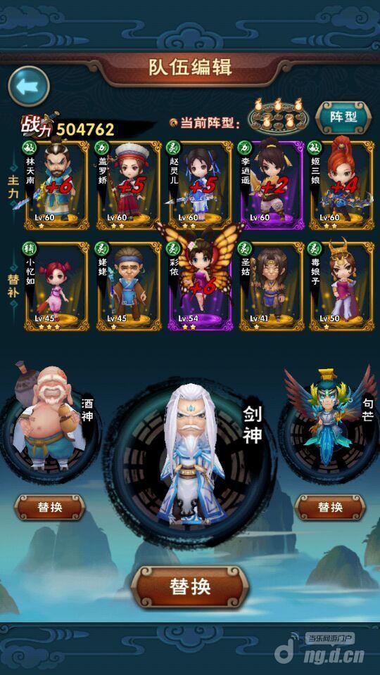 主角、三娘、罗娇、蝴蝶+6、林天南+6(直接兑换省事),此阵容绝对能上战力榜了,具体名词看三娘罗娇能加几。