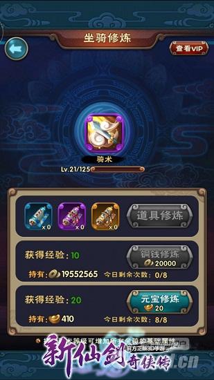 在新版当中,开放了全新的骑术修炼,骑术修炼在道具修炼的基础上,额外增加了铜钱修炼、元宝修炼两种途径(非R玩家不能进行元宝修炼),玩家有更多更自由的选择来提升骑术等级。骑术秘籍分为三种,分别是精良、史诗、传奇三个级别,提供的骑术经验也是不一样的。铜钱修炼和元宝修炼则是每日有次数限制。骑术等级越高,所有坐骑增加的基础属性也就越高。各位少侠如果想获得更高的属性加成,一定要记得把骑术点高哦。