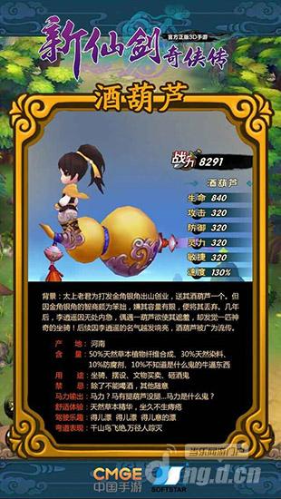 比起一飞冲天的仙鹤,酒葫芦胜在内部空间宽阔!不管少侠你出门在外有多少行李,都可以通通塞进葫芦里面,保你出门在外衣食无忧!不过要注意的是,因为小李子当年曾经用葫芦来装过...呃,童子尿,小心物品会有一股怪味!