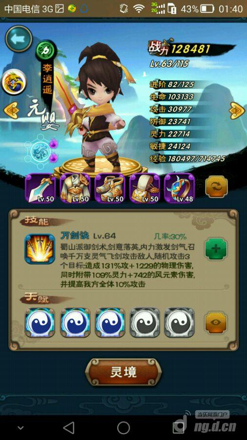 同时!到45会有练灵!练灵配备的人物身上的灵一般和推荐人物强化的装备一样。