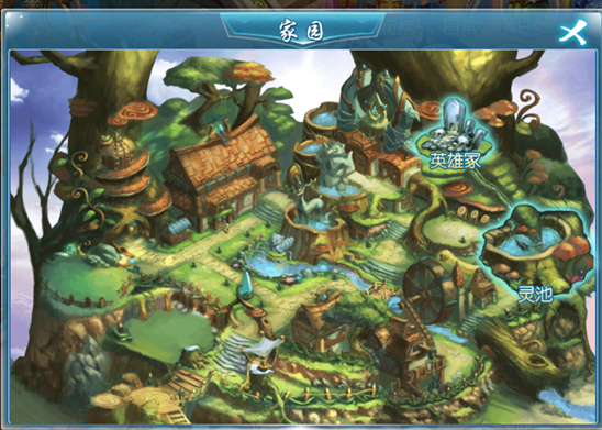 一、家园:家园板块里有两个独立的功能,一个是英雄冢,一个是灵池。
