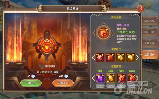 3、此外还可以通过龙纹熔炉,通过消耗钻石开启熔炉进行召唤,随机获取龙纹碎片
