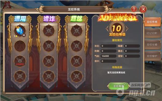 1、龙纹系统会在角色达到75级时开发,龙纹UI界面,分为通用、诡诈、超然三种系列;;