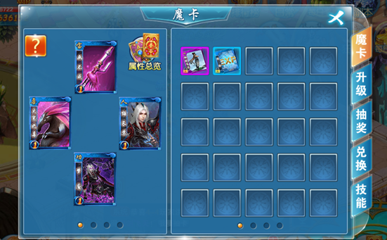 一、魔卡功能分为五个板块:魔卡,升级,抽奖,兑换,技能。