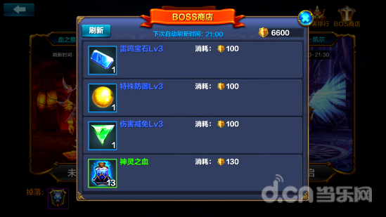 BOSS金币可以在BOSS商店中使用,可以购买各种稀有的宝石与神灵之血。宝石可以镶嵌,赋予装备特殊的属性,神灵之血可以直接用于血脉的激活。