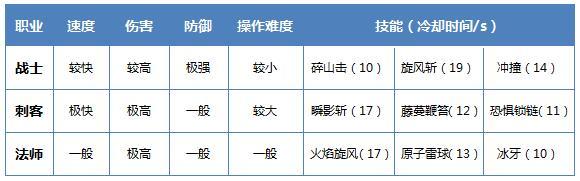 《神兵奇迹》沿用了RPG游戏中的三大经典职业,并在此基础上加入了不少符合游戏世界观的元素,使每个职业都变得极富特色。三个职业分别是战士、刺客和法师,分别继承了英雄斯巴达的力量、敏捷与智慧。我们可以从下表中非常直观地看到三大职业的特点。