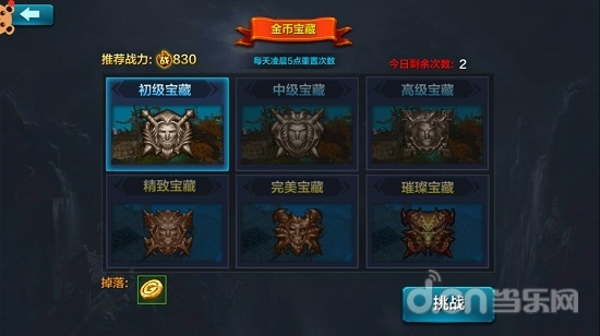 金币宝藏是神兵奇迹中的每日玩法,玩家每天可以进入两次,每天凌晨5点会刷新重置次数,金币宝藏关卡分为6个等级,从初级宝藏到璀璨宝藏6中,通过一定的条件解锁更高等级的宝藏。