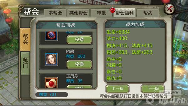 加入一个帮会之后,你就享有帮会的福利了,不同等级的帮派能给你带来不同属性的加层,所以小伙伴努力让自己的帮会等级高起来。帮会还有帮会商城,商城中可以用帮贡来换取玄铁、阿碧美人以及双倍经验丹。帮贡可以通过跟帮会中的小伙伴一起下组队副本,打帮战,打聚宝盆等来获取。