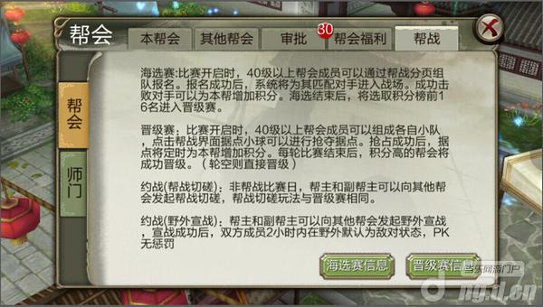 每周都会有帮战,帮战界面就在帮会界面那边的最后一项。周二周三是海选赛,周六周日是晋级赛以及决赛。参赛的前提是要组队,然后队长打开帮会的帮战界面。然后可以带领队伍的小伙伴愉快的帮战了。