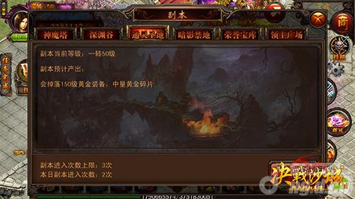 勇士们在等级达到50级时,便能开启《决战沙城》通灵圣地之门。通灵圣地会依据勇士们的等级而调整,以一转54级的战士为例,进入当前的通灵圣地副本等级就是一转50级。进入圣地后将会出现5只小怪和1只大BOSS,勇士们需要在限定的5分钟时间内干掉所有敌人,同时捡取掉落的黄金碎片和黄金装备。爆出的物品疯狂捡起来吧勇士们,时间不够杀不死BOSS,也不能亏了掉下来的黄金碎片啊!