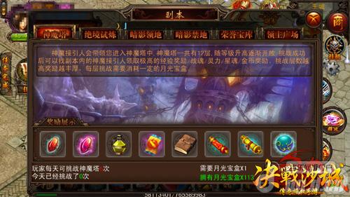 刚进入游戏,2级了。跟着主线任务,才点两下,3级了。相比网游传奇的打死升不到1级的节奏,《决战沙城》人物等级蹭蹭往上升,轻松快节奏,够爽快我喜欢!在人物等级到40级后各种副本、战斗的玩法开启,玩法丰富到出乎意料!神魔塔、绝境试炼、暗影领地、暗影禁地、荣誉宝库、领主广场6大副本,沙城争霸、驻地争霸、竞技场、怪物攻城四大自由PK系统,还有更多活动中的虎符专属高级副本、燃烧的远征、炼狱回廊三大高级副本,这么多玩法完全不担心会出现重复刷任务打怪的枯燥体验。