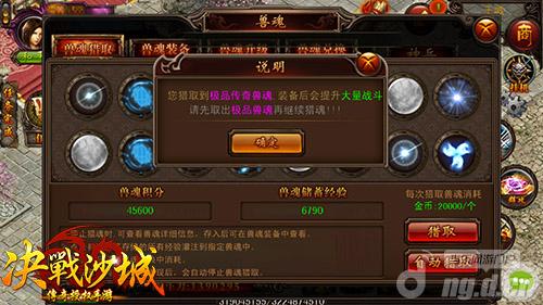 需要注意的是,在兽魂达到20级后,已经不能再进行经验灌注升级。而兽魂在达到20级时必须要有大量的兽魂经验以及金币,这对一般玩家来说也是不小的挑战。除此之外,兽魂升级需要的不仅仅的兽魂经验的积累和兽魂幻化丹,更多还要考验勇士的人品与运气。兽魂升级成功率较低,伙伴们且升且珍惜!