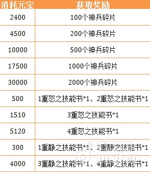 【活动规则】:活动期间;亲们即可每天购买一次神兵和技能精通书的资源哦