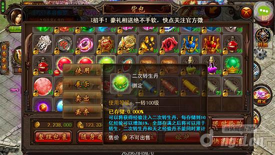储存100亿的二转经验丹相较于一转而言,同样是个漫长的过程。不仅需要勇士们在刷怪的时候,将背包中不同倍数的经验卷轴同时使用,叠加经验倍数。如果可以,还建议各位勇士组队刷怪,战士游走引怪,法师定位施放法术,而其他队员则开群攻技能,这样刷怪的效率将会大大提升,不到一小时便能得20亿的经验。同时,每日必刷的经验增加之地单人副本神魔塔,以及组队副本遗忘之地,也是增加经验值的好去处。