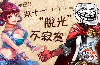 光棍节。我们并不孤单!《世界online》精心打造“脱光”活动,一起来参加光棍节副本活动,做一个彻彻底底的光棍,无拘无束的生活、无拘无束的游戏,一起为光棍自豪!光棍是种境界,不是谁都能体验。一人消费没有拖累,昼夜游戏无人能管…..