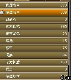 装备还差两件:云龙衣服,黑月腿。装备今晚弄好后技能学好,成品预计:血3500,蓝1.8万,自动回蓝550,自动三花聚顶三回合后叠加回蓝7000左右,红月法直接无视!900洞察,成品800抵抗,无视法力燃烧!无视贤者禁言!目前最怕贤者法力冲击,不过我的宠会学魔挡技能,这样如果贤者宠不挡,我直接律令秒了他!成品400左右魔法命中!这就保证了定身术能定住一切暴力!一般人都能定,攻击次数4,以前魔法命中125,确实没办法打架!现在好了,有命中强多了!59级能够学习3个加宠血的技能,宠物也不会太差!整体感觉相当不错!上部分图!