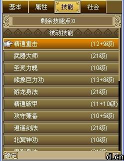 主动:天道无常1级(武器自带)11级英勇(由于技能点不足,我准备了1个10级英勇的海神手,对付反击高的怪,但是后来我发现我带灯灵,自动虚弱,11级英勇打英灵迷宫的变异大树都不怕反,所以后来又放回仓库积灰)