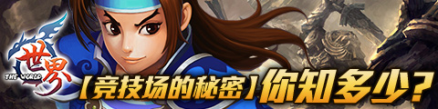 《世界online》竞技场最大的特点在于考验残酷,奖励分明。不要认为竞技场只是单纯的打架,在这里拳头才是说话的权利。竞技场每天开放时间:20:00-21:00.玩家可到紫禁城通过天下武斗竞技场NPC进入。每天系统会自动对竞技场优秀的玩家进行排名,并且对这些玩家添加额外的竞技场积分奖励。战斗是持续的,赢取竞技场积分获取海量奖励。然而参加比赛,没击败过对手,那么积分为零。每天也只有3次机会。参与竞技场,必须有一定的等级,能够灵活运用各技能战术有效克制对手,以擂主身份接受世界勇士们的挑战,保持不败纪录。实力不济的玩家可是会直接被扫地出门的哦!