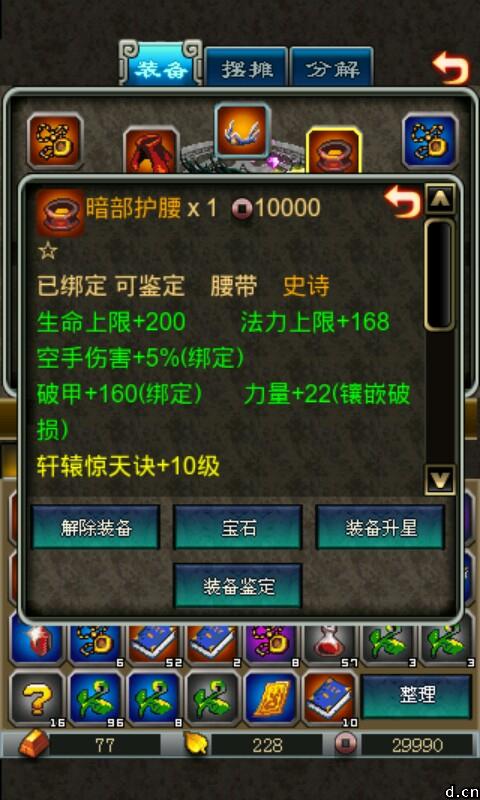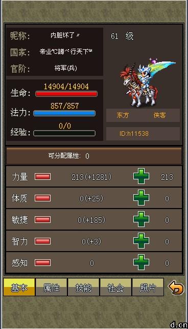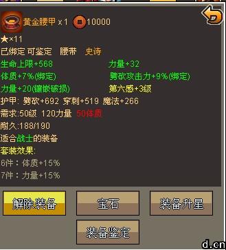 我朋友61级,他的腰换黄金,其他一样:属性如下