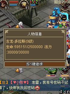 主要伤害魔法攻击,有自动+字禁言技能,所以暴力最好带魔档宠物,或者灯。拳最好不要站第1位置,队长最好防止禁言,破防叠不了。古龙的自动回血会加防御的(加1w防御左右1次),和黑龙一样随即放,最好清除了。(我的2暴力都是吃了75药,加5000砍后的状态,只不过红雷那人品不好加到5000砍就遇不到古龙)