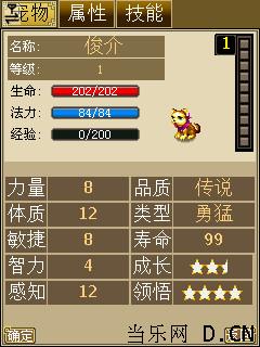 悟性:高悟性的宠物直接影响宠物天赋技能的领悟,目前天赋技能5级满,而领悟宠物技能9级满