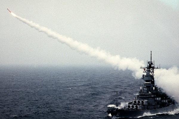 海湾战争期间,美国甚至启用了世界仅存的衣阿华级战列舰参与对伊作战,图为密苏里号正在发射“战斧”巡航导弹