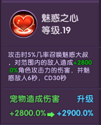 上期图鉴我们介绍了肉盾型宠物神牛,在和各位岛主讨论中发现,纯T的能力好像不是很大众化,更多的喜欢输出型,so今天我们就来讲讲攻防一体的气质大叔,首先呢先看属性,夸张的血量加成让其不愧于防之称号,而且攻击和防御的属性也不差,比较突出,所以三围还可以哦,和样子中的三围完全匹配嘛O(∩_∩)O。