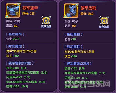 - 附加伤害:对于精英附加30%伤害,BOSS附加45%伤害,相当于对攻击力的直接翻倍有木有,这样的加成可不是一点半点的,直接跨越了一大步。