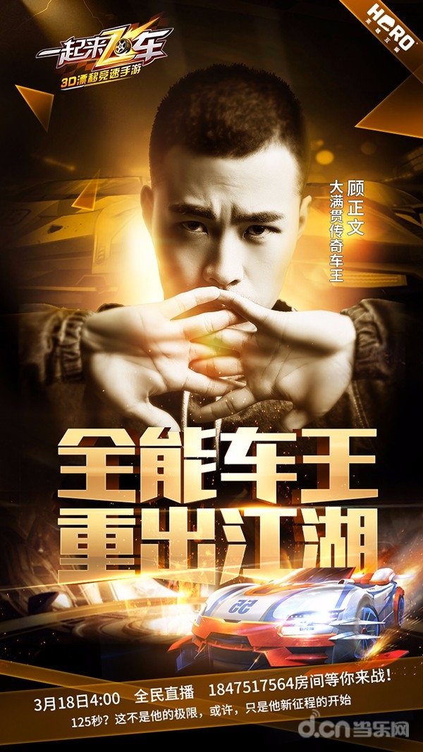 一起来飞车》全新版本上线之际,全能车王顾正文重出江湖!《一起来飞车》官方邀请到顾正文于3月18日下午4点在全民直播1847517564房间进行线上直播,届时车王将会进行《一起来飞车》水晶矿山125秒的挑战!顾正文,第一个包揽飞车全部赛事冠军完成大满贯的选手,WCG QQ飞车中国区总决赛总冠军,SSC全国总决赛个人竞速全国总冠军。顾正文所创造的不仅仅是那些长的数不完的奖项与荣誉,他所创造的还是一个关于飞车竞技的激情梦想,所以备受玩家喜爱。与此同时,3月16日、17日连续两天晚6点至10点,更有两位官方人气主播小暖暖、黑皮哥哥i在触手平台全面揭秘宠物系统!精彩不容错过!