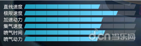 和妖歌差不多的极限速度在A级车里非常突出。是公认手感较好的车子,除此之外加速度也非常可观,与极限速度相得益彰,加上不错的喷气速度,可以说是非常侧重于速度的一款车子。