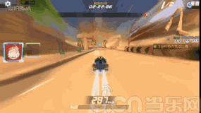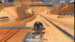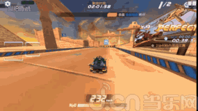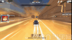 8、过了加速桥,再使用一个氮气加速,正好会在加速结束前行驶到断崖,出了断崖记得腾空喷,然后在落地喷火的时候向右漂移过弯(这样会给更多的氮气)。