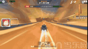 6、双喷结束后接着使用氮气加速,这里是一个比较窄的U型弯道,所以在车子在漂移的时候不要太靠左,出完后使用氮气加速,路中间还有一个而加速带不要忘了踩。