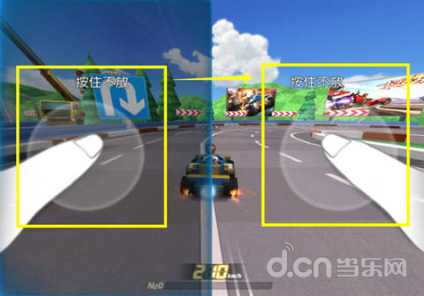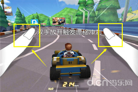 最后,在转弯完成后,放开双手,让赛车冲刺。(如图三)