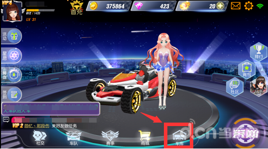豪车保养很重要,今天我们就来讲讲保养卡的用法,保养卡的用途在于为限时的飞车加时或变成永久。保养卡可以在商店购买,也会随机抽取获得。下面我们来讲讲用法,点击车库。(如图一)