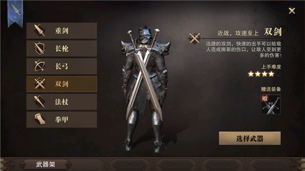 双剑:迅捷的双剑,快速的触手可以给敌人造成撕裂的伤口,让敌人受到更多的伤害。