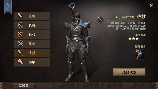 法杖:使用具有魔法能力的法杖,拥有不俗的远程输出力,是队伍中不可或缺的一员。