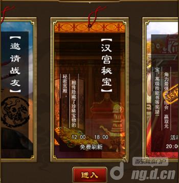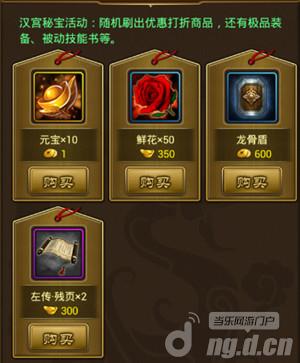 汉宫秘宝每天12:00和18:00免费刷新,会随机刷出优惠打折商品,还有极品装备、被动技能书等等。汉宫秘宝刷出的物品往往要比商店中便宜很多,有时候还有“1金币20元宝”、“1金币1朵鲜花”等超值物品。要是遇到这种天下掉馅饼的好事,大家可千万不要错过哟!
