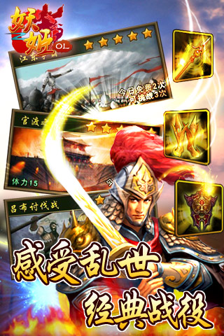 凛冬将至战火不息,三足鼎立谁敢来战!《妖姬OL》全新资料片震撼来袭,问鼎三国当家花旦,成就卡牌策略之王! ·经典活动“洪福齐天”化身转盘“天官赐福”强势登场。 ·决战沙场加入跨服战,各位主公快来一较高低。 ·专属武器加入灵石系统,战力再次飞升。 ·三足鼎立、武神庞统、新图腾等诸多全新玩法震撼降临。 ·三国当家花旦,小乔、大乔、貂蝉、祝融等多位美艳妖姬等你宠幸。 ·经典战役真实还原,亲身体验烽火中国古代战场的峥嵘岁月。[详情]