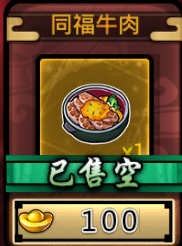 武娘要吃肉!在游戏中,同福牛肉可增加角色100点体力值,每日使用上限为4次,同福牛肉的元宝售价也是非常的物美价廉。另外,每天11点到14点,17点-20点均可以免费领取70点体力,各位小伙伴们可千万要记得喔!