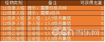 在国王战开启前1天内,打高等级怪物会掉落“龙蛋”道具。